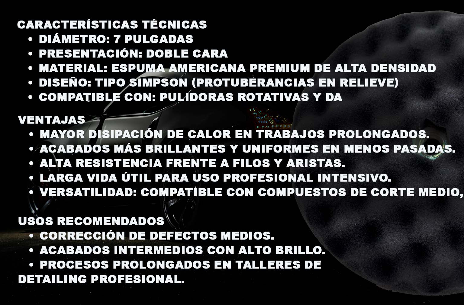 Su diseño tipo “Simpson” con protuberancias en relieve optimiza el proceso de pulido al mejorar la ventilación y el contacto con la superficie.